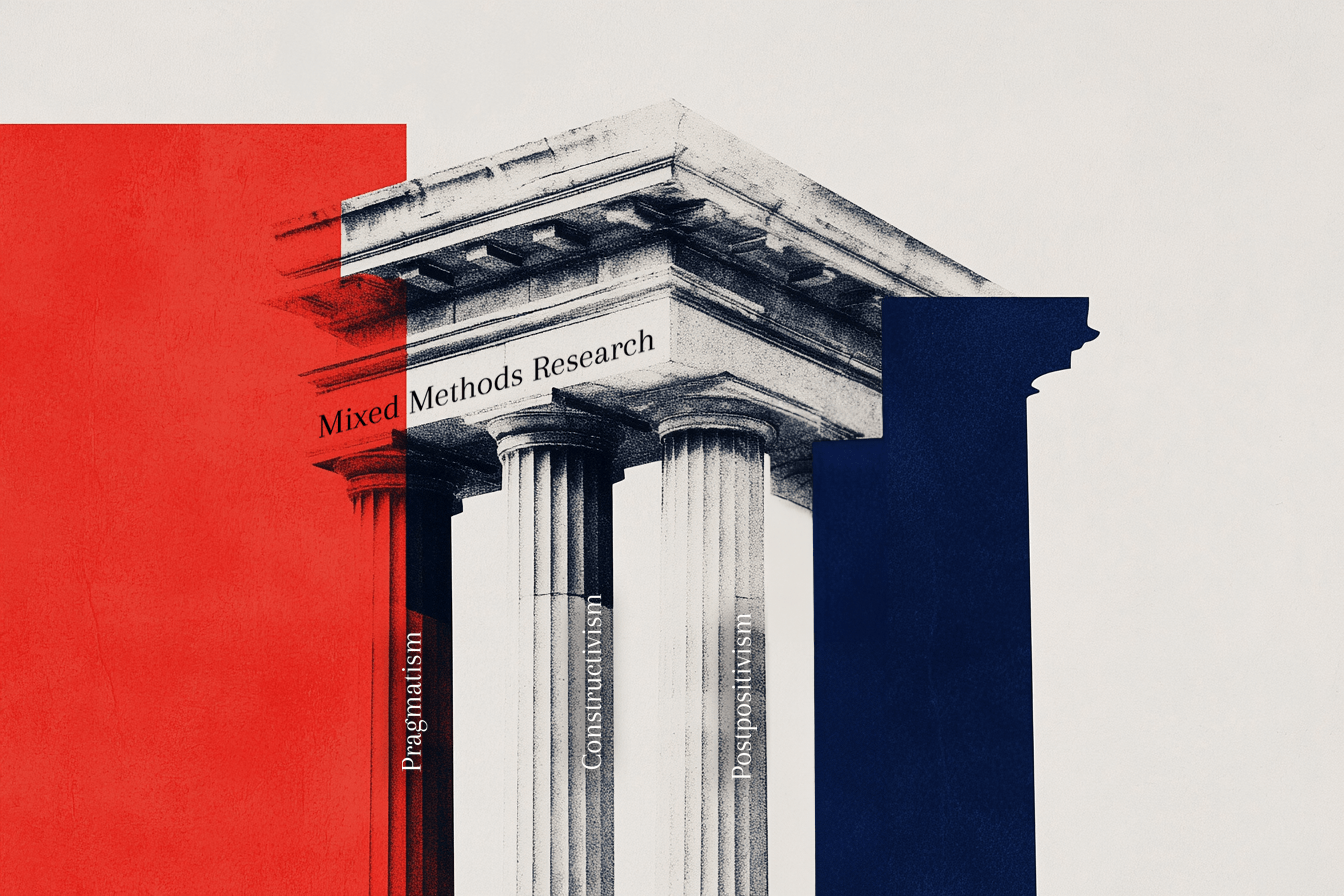 Da die Mixed-Methods-Forschung mehrere Phasen umfasst, können die zugrunde liegenden Annahmen je nach spezifischem Design variieren. Im Allgemeinen schlagen Creswell und Plano Clark (2011) vor, dass Forscher häufig den Pragmatismus als übergreifende philosophische Grundlage annehmen, wenn die Stränge gleichzeitig durchgeführt werden. Der Pragmatismus betont praktische Forschungsansätze und konzentriert sich auf das, was zur Lösung des Forschungsproblems funktioniert, ohne sich auf ein einziges Paradigma zu beschränken. Bei der qualitativen Komponente können sich die Forscher am Konstruktivismus orientieren, der davon ausgeht, dass Individuen durch ihre Erfahrungen und sozialen Interaktionen eine Bedeutung konstruieren, wobei subjektive Interpretationen im Vordergrund stehen. Im Gegensatz dazu spiegelt die quantitative Komponente in den sequenziellen Strängen oft den Postpositivismus wider, der davon ausgeht, dass die objektive Realität durch systematische Beobachtung und Hypothesentests gemessen und verstanden werden kann, wobei anerkannt wird, dass eine absolute Wahrheit unerreichbar ist.