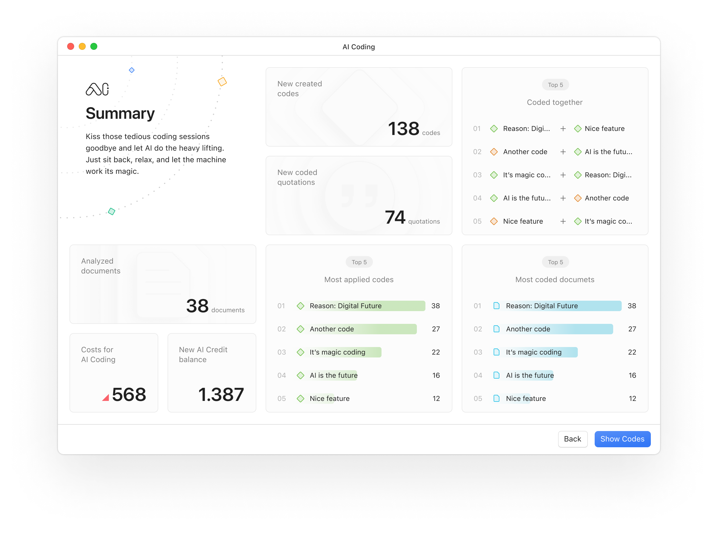 ATLAS.ti Web acelera su flujo de trabajo de análisis para que pueda dedicar más tiempo a descubrir ideas y menos tiempo a tareas tediosas como trabajar en Excel. Ahorre tiempo y energía con herramientas de análisis basadas en IA y alimentadas por el innovador modelo GPT de OpenAI - todo en su navegador web.