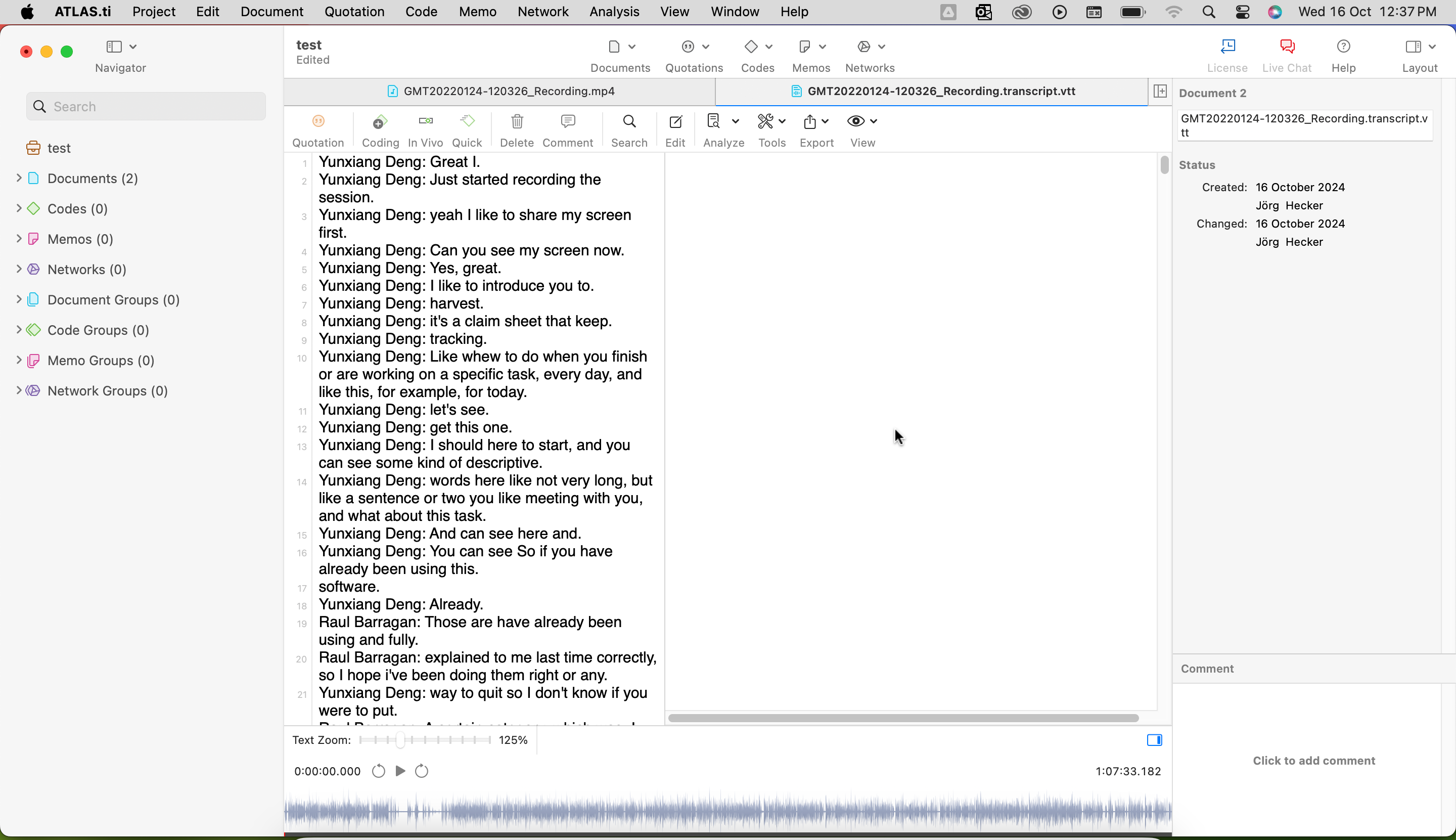 Both ATLAS.ti Desktop and ATLAS.ti Web offer seamless integration of automated transcripts, allowing researchers to focus on analyzing the content rather than managing files. All versions of ATLAS.ti are perfect for those needing advanced AI features and deep analytic capabilities, while ATLAS.ti Web offers a streamlined, collaborative environment for working on transcripts with colleagues in a live setting.