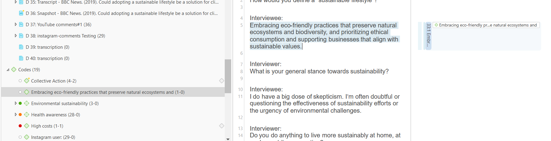 Example: If a participant in a workplace study repeatedly refers to their job as a “rat race,” the researcher might use “rat race” as a code to capture this particular sentiment.